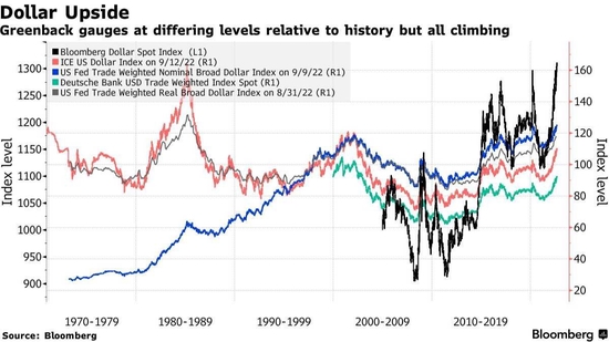 美元对世界各国货币的汇率不断走高,但日元的压力更大。本月,随着日元兑美元汇率跌至24年来新低,有关日本政府可能不得不采取汇率干预措施的猜测再度升温。周二,美元兑日元汇率徘徊在142.60点附近,交易员们关注美元兑日元突破145点。上周,美元兑日元曾触及144.99点。据悉,在1998年,美元兑日元汇率飙升至146.78点时,日美曾联合干预汇市以支撑日元。
