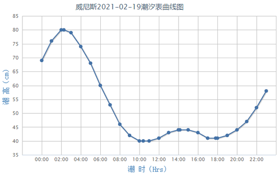 还有一个最重要的因素就是潮汐。威尼斯靠海(亚得里亚海),它的水位受到潮汐影响很大。海平面上升,水位就高,海平面下降,水位就低。这已经在几次干旱和洪涝中充分体现,也才有了2018年投入运行的摩西计划(潟湖上建水坝阻挡海潮)。农历初一、十五前后,是潮汐活动最为明显的时段,此时潮位差也最大。从下面两张潮汐时刻表可以看出,2月28日(农历十六)和2月19日(农历初七)相比,明显潮汐差更大,低潮期水位也更低。缺少了海水的补给,“水城”也难免要“喊渴”了。