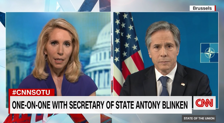 布林肯强调与盟友合作应对中国挑战的重要性——他周日视频连线《国情咨文》节目时,身在布鲁塞尔,参加北约外长会议。