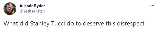 反应最激烈的还有意大利裔美国演员、导演Stanley Tucci的粉丝了: