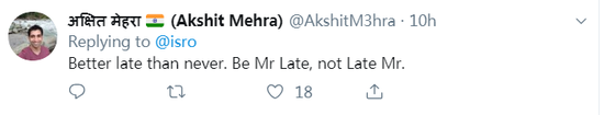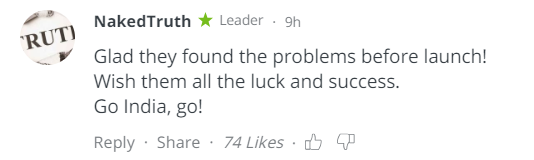 请团队放心。我们印度人民相信你们。技术故障是常见的,而火箭需要在完全合适的前提下发射。