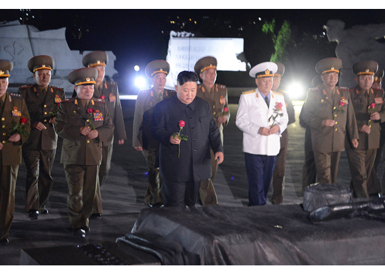 金正恩向烈士墓敬献了花束,并向“伟大年代的英雄们”表示崇高敬意,称“他们用宝贵的牺牲保卫了朝鲜,奠定了朝鲜国家强大的基础”。