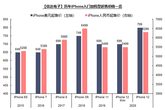 目前来看,iPhone 12系列起售价为699美元,按照郭明錤分析,供应链股价将持续上涨。