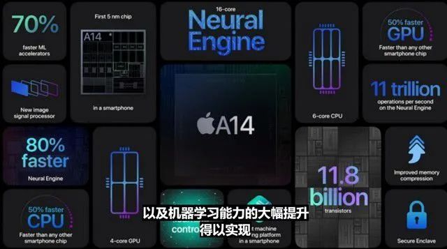 iPhone12 pro配置方面,iPhone 12 系列最大的亮点在于其搭载的新一代A14仿生芯片,这也是目前智能手机行业首款采用5纳米制程的芯片。苹果方面称,A14仿生芯片的速度和能效双双提升,拥有迄今最快的中央处理器和图形处理器,与竞争对手最快的智能手机相比,最高可超50%。