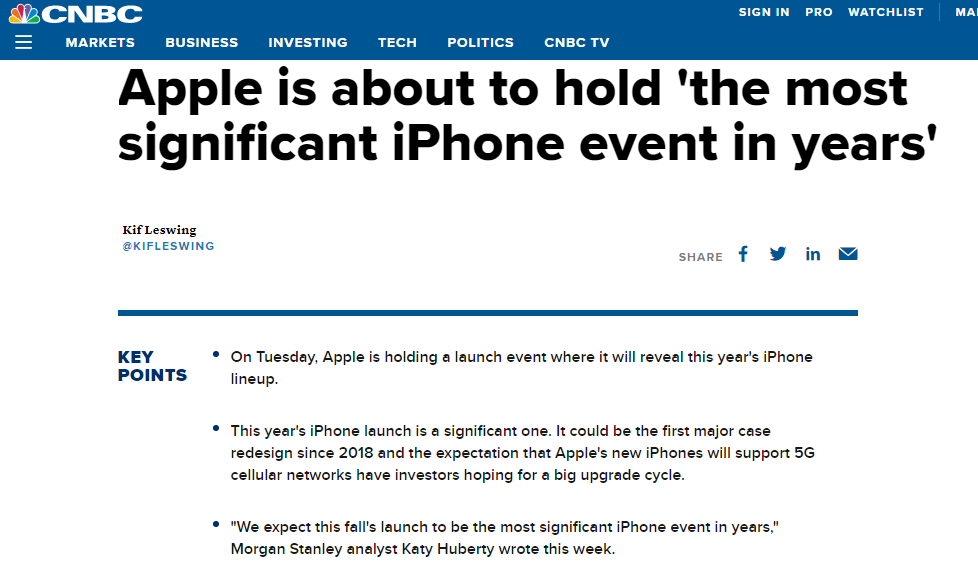 在5G浪潮下,市场期待苹果新机的到来。分析师和投资者普遍预计,iPhone 12作为苹果首款5G手机,很可能成为苹果近年来最受欢迎的旗舰机之一,并在全球近10亿iPhone用户中掀起一波升级换代。但资本市场对此有不同看法。