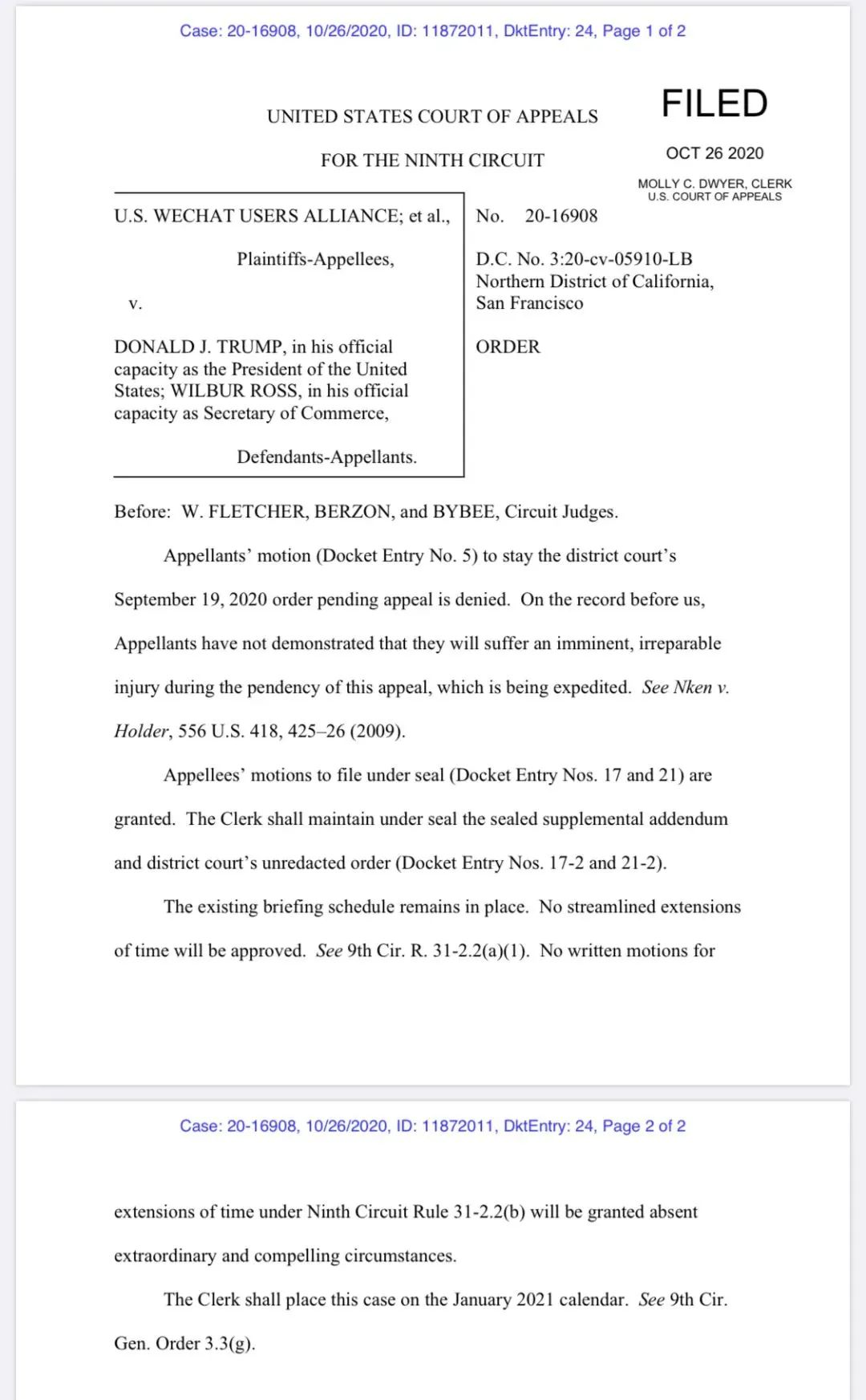 美国上诉法院再次阻止政府封杀WeChat,华人用户组织:正备战最高法。