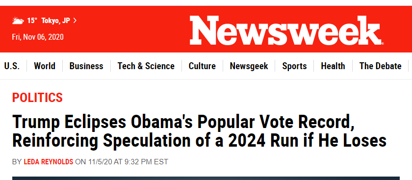 美国《新闻周刊》更是猜测说,鉴于特朗普的得票数也如此之高,哪怕他今年真输了,这是不是预示着他2024年时还会重新回来参选?