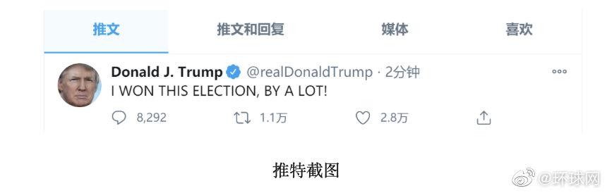 原标题:特朗普刚刚发推:赢得了这次选举,以很大的优势!
