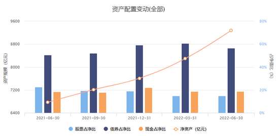 从资产配置变动情况看,近年来鹏华基金的债券占比始终在50%以上,股票占比除了2021年第二季度略高于20%外,其余时间都在20%以下且呈现逐季下降的趋势。