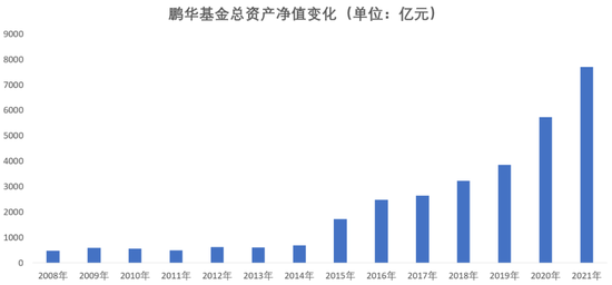期间,鹏华基金的净资产规模实现了跨越式增长,从2008年的476亿元增长至2021年的7702亿元。