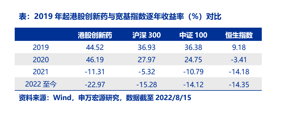 2019年至今四年中,港股创新药指数有三年年度收益率超过恒生指数。并且在2019、2020两年收益率均超过40%,明显高于其他三只指数。