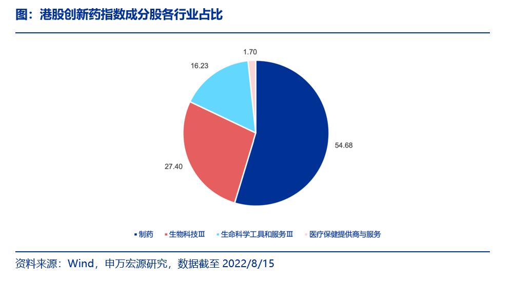 类似于CS创新药指数,港股创新药指数行业分布非常集中,也只选取了4个GICS三级行业的证券。其中权重最高的是制药行业,占比达到54.68%,超过一半。之后依次是生物科技(27.40%)、生命科学工具和服务(16.23%)、医疗保健提供商与服务(1.70%)。