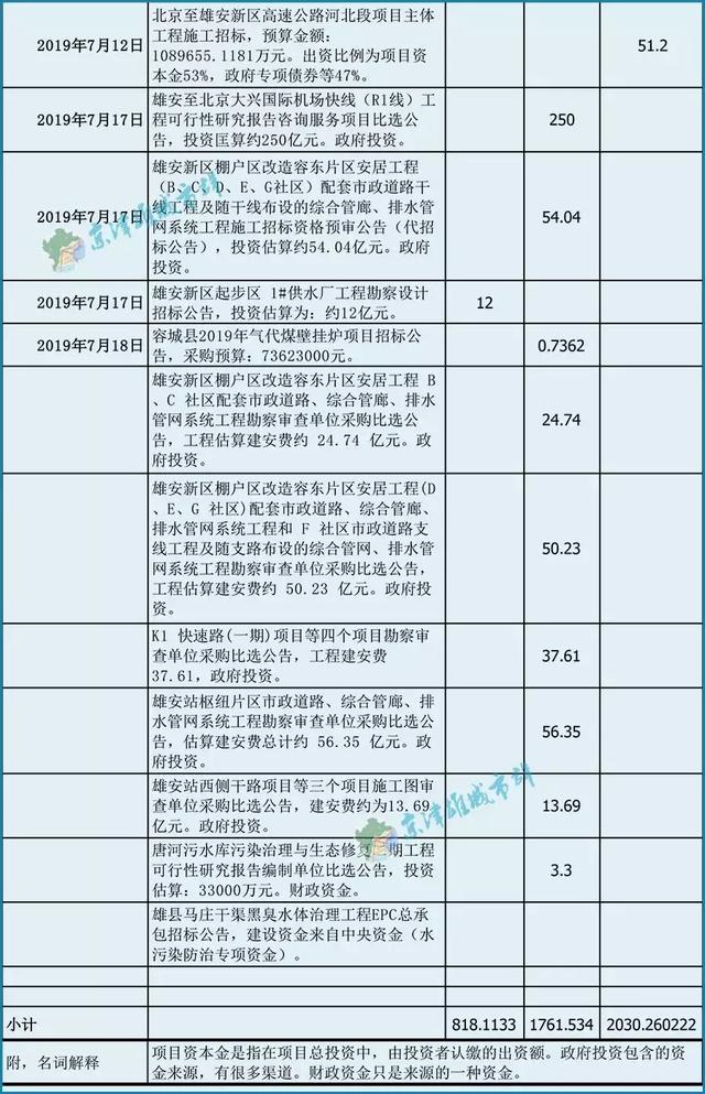 我们将新区成立以来主要的招标、投资、融资情况进行了汇总: