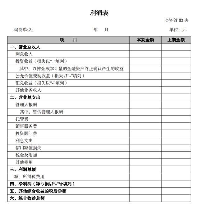 附 2:会计报表格式资产管理产品对不存在相应业务的报表项目可根据重要性原则并结合实际情况进行必要删减,对确需单独列示的内容可增加报表项目。资产管理产品需要编制合并财务报表的,可参照财政部印发的有关合并财务报表格式的规定。