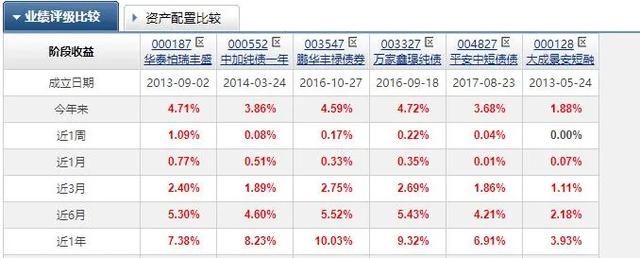 下面是上述基金与“月月赚现金”组合两只短债的业绩对比: