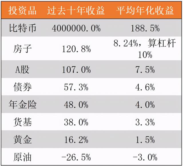 有人可能会说,当然是买比特币了,十年万倍,不香吗?!