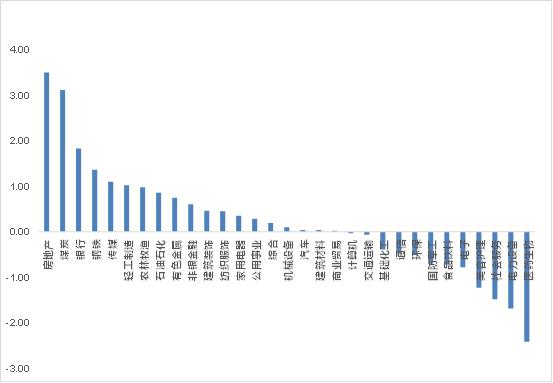分行业来看,申万一级行业指数中涨多跌少,其中房地产、煤炭、银行、钢铁、传媒等行业领涨,医药生物、电力设备、社会服务等行业领跌。