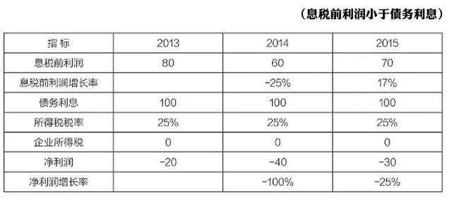 上例中息税前利润均大于债务利息支出,那么假如息税前利润小于债务利息支出,净利润的增长情况如何呢?