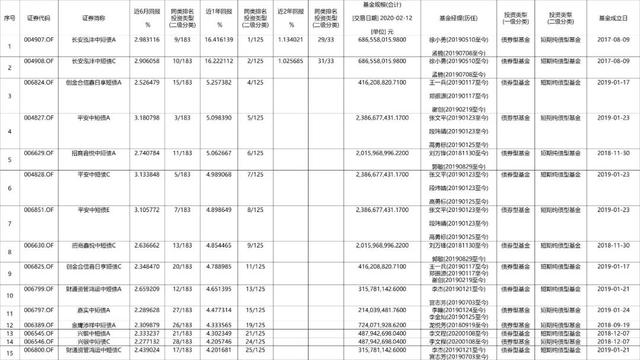 因为有2年完整业绩的短债基金很少,所以,我们从266只短债基金中按照过去6个月,1年,排名均在前30进行排名,筛选出15个基金份额: