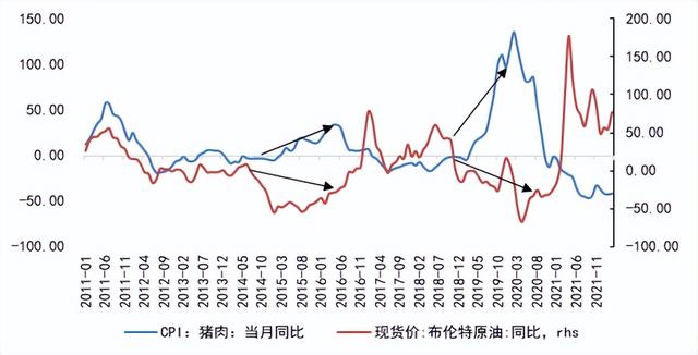 b.我国CPI中食品占比较高,但在2016年后猪油共振效应消失,例如2016年、2019年,猪价快速上涨时,油价均处在下跌区间;
