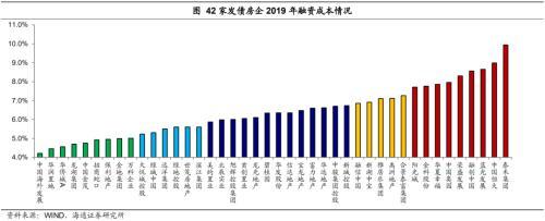那么还有哪些房企融资成本偏高?我们梳理了42家发债上市房企的综合融资成本数据,见下图。