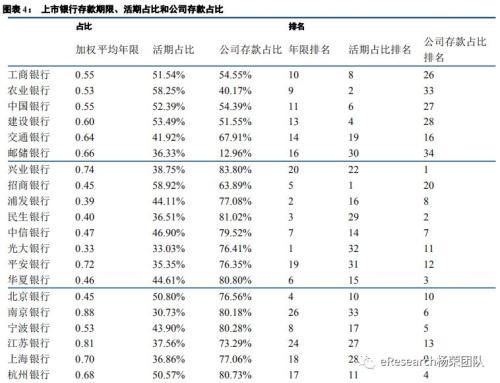 根据以上3点,我们将上市银行的存款进行简单排名,存款年限越短、活期占比越高、公司存款占比越高的银行存款稳定性也就越高。