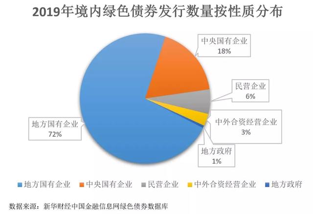 在2019年绿色债券发行主体中,国有企业仍占据主要地位。从发行数量看,共有91家地方国有企业和9家中央国有企业合计发行100只绿色债券,占比达90%,发行规模为2317.77亿元,占比高达95%。全年只有7家民营企业和5家中外合资经营企业参与绿色债券发行。相对于国有企业,民营企业和外资企业参与度较低的局面仍然没有改善迹象。