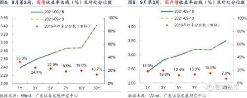 9月第3周(9月13-18日),国债收益率曲线整体上行,国开债收益率曲线两端上行、中间下行。综合来看,国债各期限收益率大体处于2016年以来22.0%左右分位水平,国开债各期限收益率大体处于2016年以来15%左右分位水平。