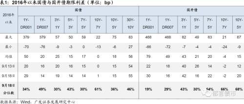9月18日,7天资金利率上行,带动1年期国债与国开与7天资金利率的利差下行,而1年期国债与国开与隔夜资金利率的利差明显上行。从当前利差分位数来看,国债10Y-7Y利差分位数在50%之上,国开债7Y-5Y、10Y-7Y和10Y-5Y等利差分位数在50%之上。即从曲线来看,中长久期,国债10年、国开债7年和10年性价比较高。