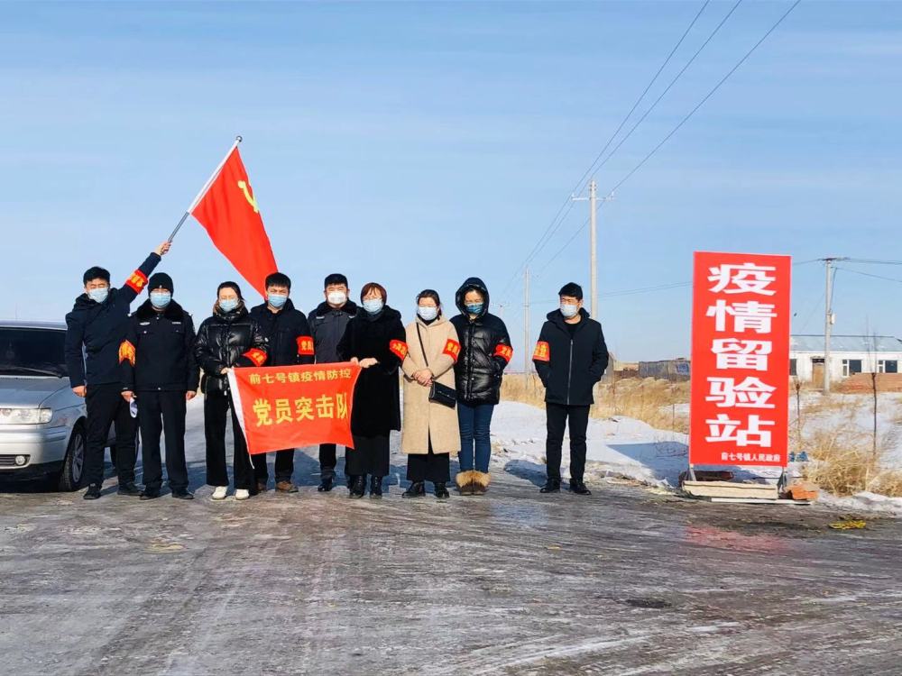 ↑党员突击队到前七号镇龙凤山村卡点执勤。受访者供图