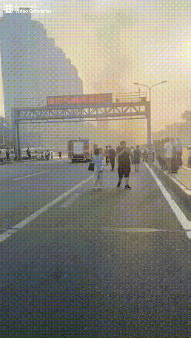 事发时,正处交通晚高峰,快速路车辆严重拥堵,交警、消防密切配合,才让消防车冲过车流,快速到达现场。