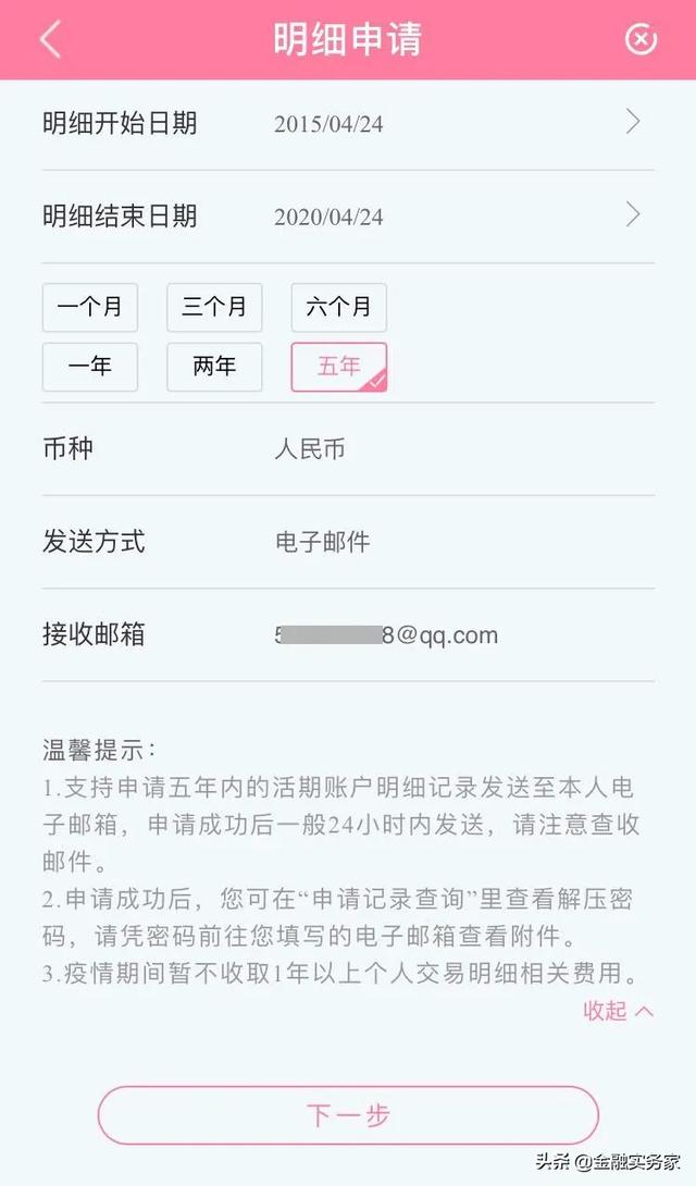 登录最新版手机银行,通过搜索明细申请找到活期账户交易明细申请,可支持申请五年内(含)交易明细电子版发送至本人电子邮箱。