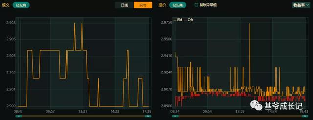 最后成交时间为17:39:31的2.90.大部分成交在9:00~10:00和14:00~14:50 这两个时间段内完成,14:50~16:20只成交了一笔(1.5小时)最高2.9075,最低2.90,全天在0.75个bps之间博弈,也是难为大家了。数据来源:QB