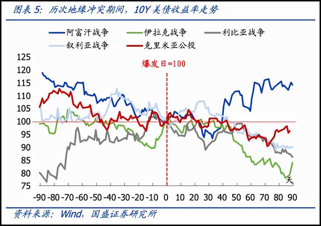 接下来我们来看各类资产在历次战争中的具体走势。