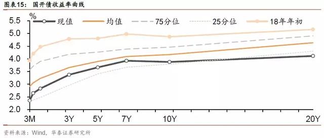 其中,长端利率债趋势大概率还在,但估值吸引力快速弱化。之前是明显的估值洼地,尤其是十年期国债临近3.7%这一熊市修复的位置(详见年度策略),盈亏比对投资者十分有利,且存在基本面、供求和投资者行为方面的配合。经过上周的演绎之后,国开和国债收益率曲线已经全面低于历史中位数水平,估值吸引力有所弱化。好在经济惯性下行压力仍大,利率债供求、投资者行为仍偏有利,趋势仍有利,安全垫有所弱化,进入到“富贵险中求”的阶段。这种组合和年初的趋势不佳、估值具有较强吸引力正好相反。显然,从操作思路上,年初看空有一百个理由,看多只需要一个就是收益率已经够高。目前是趋势还在,谈风险可能还不合时宜,不过估值吸引力有所弱化,继续享受趋势的同时,随着时间推移(比如明年一季度),届时就需要逐步开始关注潜在风险点,比如社融、房地产政策、中美贸易谈判进展和美联储加息节奏等。相对而言,超短端利率已经处于历史较为低的位置,已经回到金融防风险之前,而3-7年品种相对吸引力尚可,存在继续挖掘空间。就本周而言,由于上周利率下行幅度较快,G20召开在即,中美贸易谈判看似有一定的进展,短期预计可能会稍作休整。