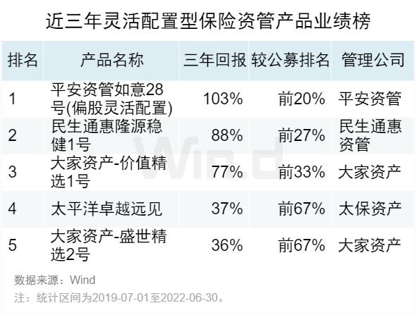 近三年灵活配置型中,平安资管如意28号(偏股灵活配置)以103%回报领涨。
