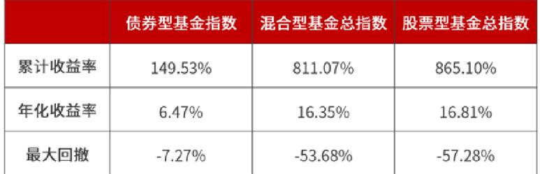 如果看回A股,我们统计了2006到2020,近15年间各类型基金的数据,可以看到,债券型基金指数的年化收益率在6%左右,混合型和股票型基金指数的年化收益率则在16%左右。