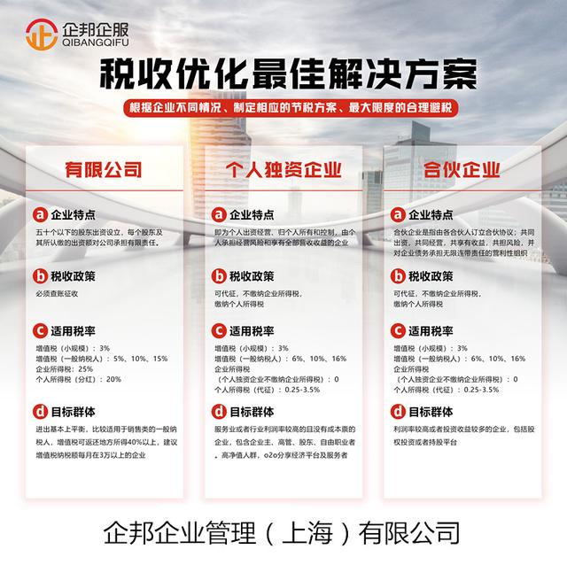 企邦企业管理(上海)有限公司是经工商局、财政局审批认证的专业从事工商注册、财务代理、商标注册、基金备案、大额投融资、上市并购、股权转让、股权收购,上海公司注册等各种资质审批的代理服务机构。提供工商代理、公司转让、公司注册、天使投资人等服务,企邦企服具有多年的工商、税务代理经验,帮您完成“自己当老板”的梦想。